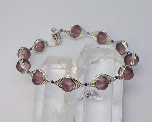 Sterling Silver Wire wrapped Sodalite Stone Cuff Bracelet