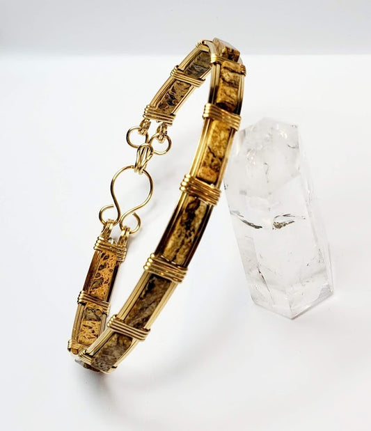 Oval Bangle Bracelet - brass wire wrapped jasper