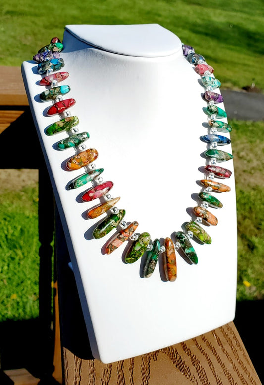 Rainbow Impression Jasper Graduated Stick Necklace with Sterling Silver Clasp