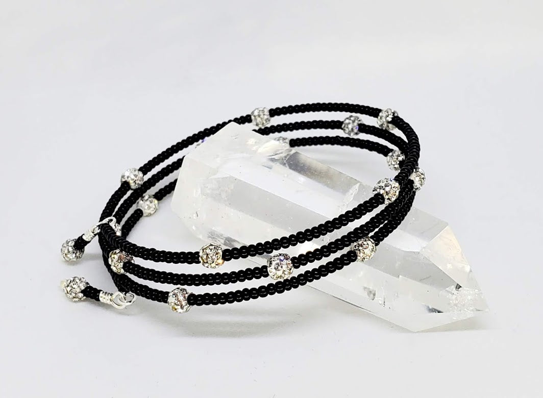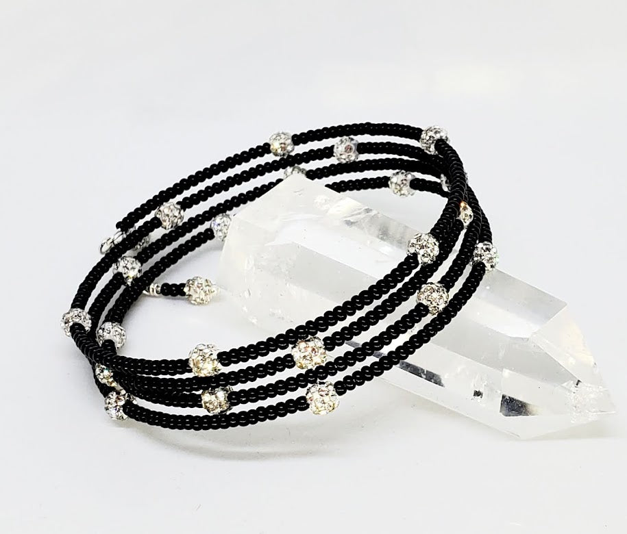 3, 4, 5, 6, or 7 Tiers of Black beads with mini disco glittering balls spaced throughout give this bracelet a far more upscale & expensive look.