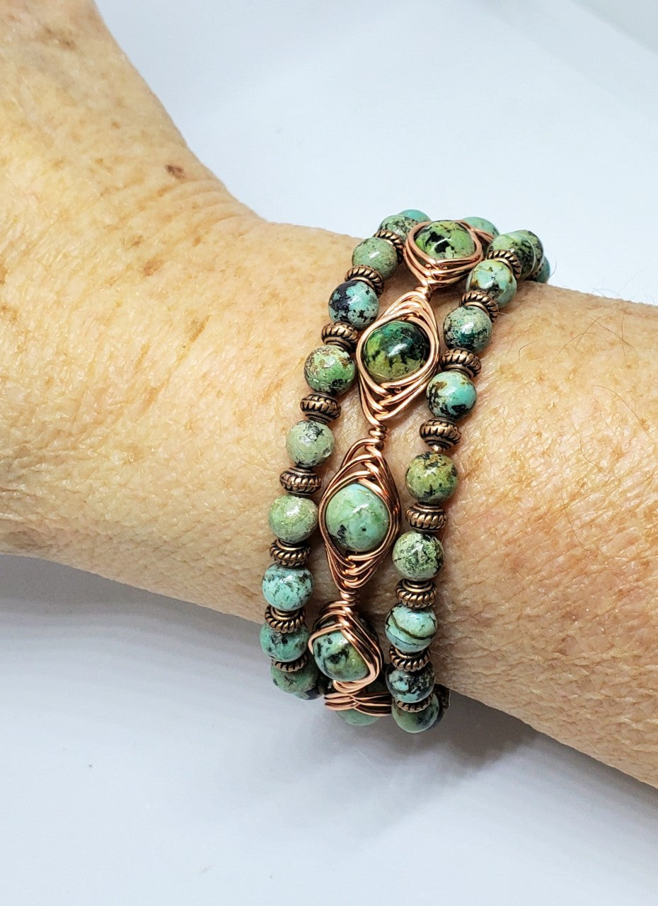 Copper Wire Herringbone wrapped African Turquoise Stones