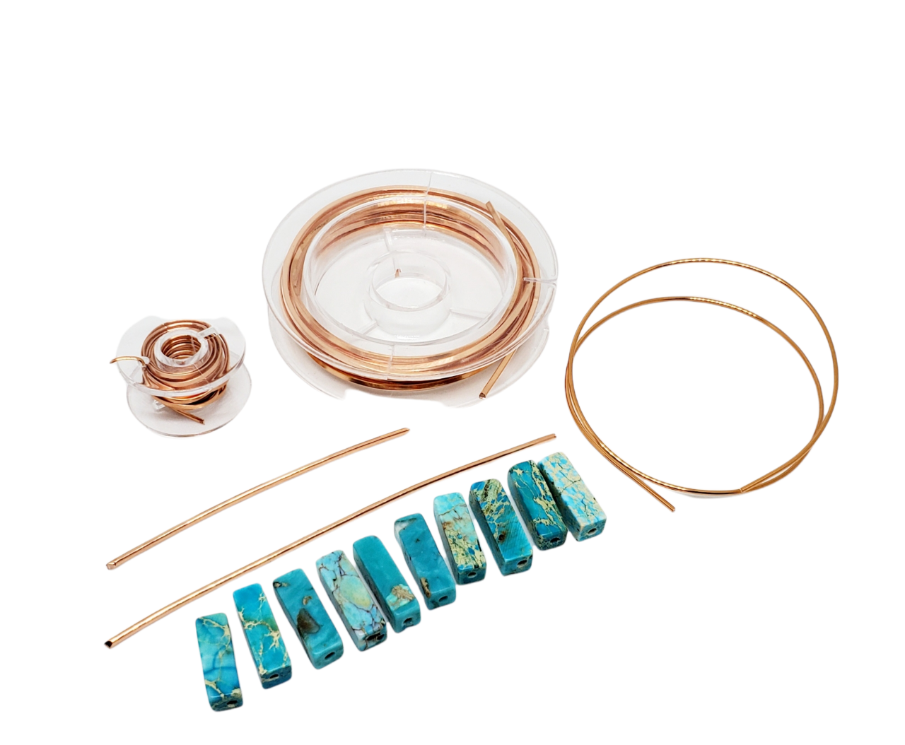 Copper Wire Wrapped 4x12mm stones Bangle Bracelet Kit with Instructions