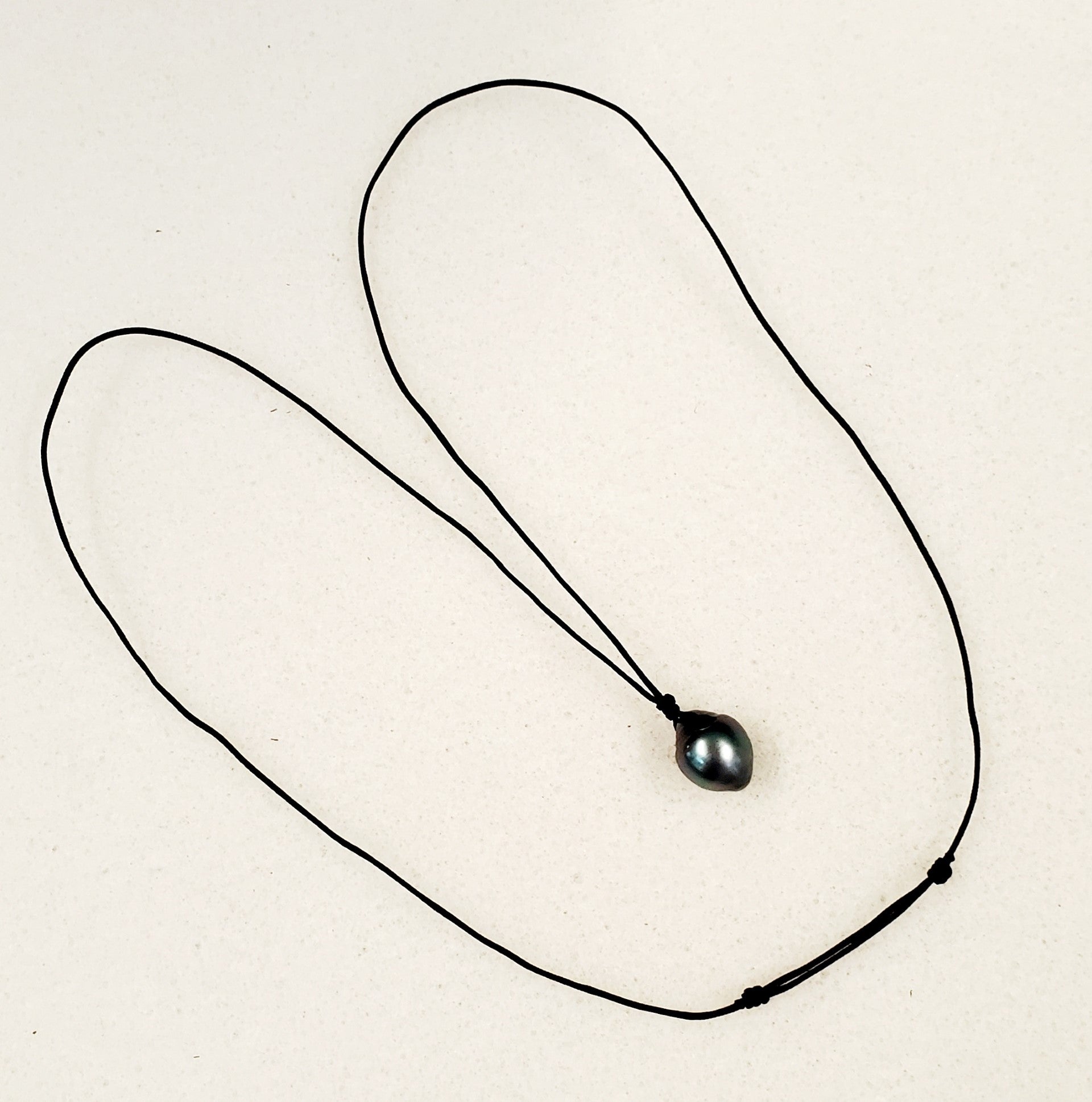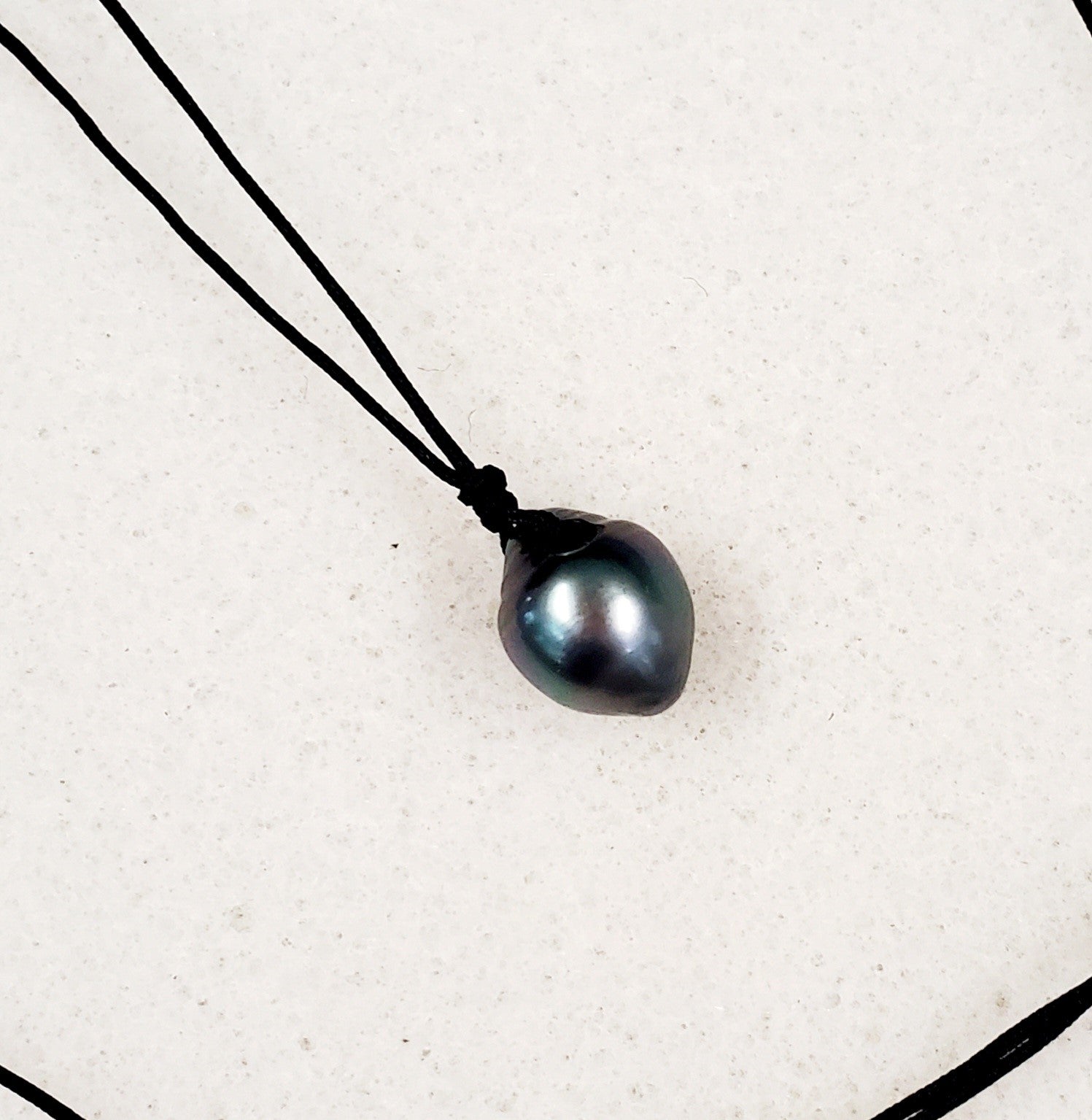 1- Pearl drop restrung from leather cord to nylon cord for more feminime look.