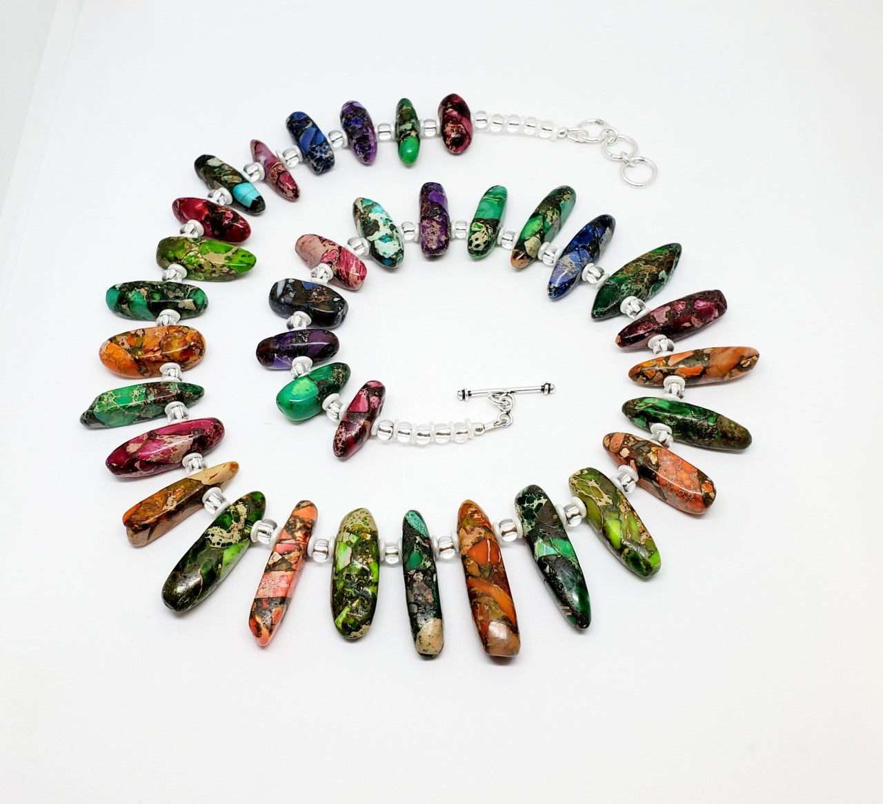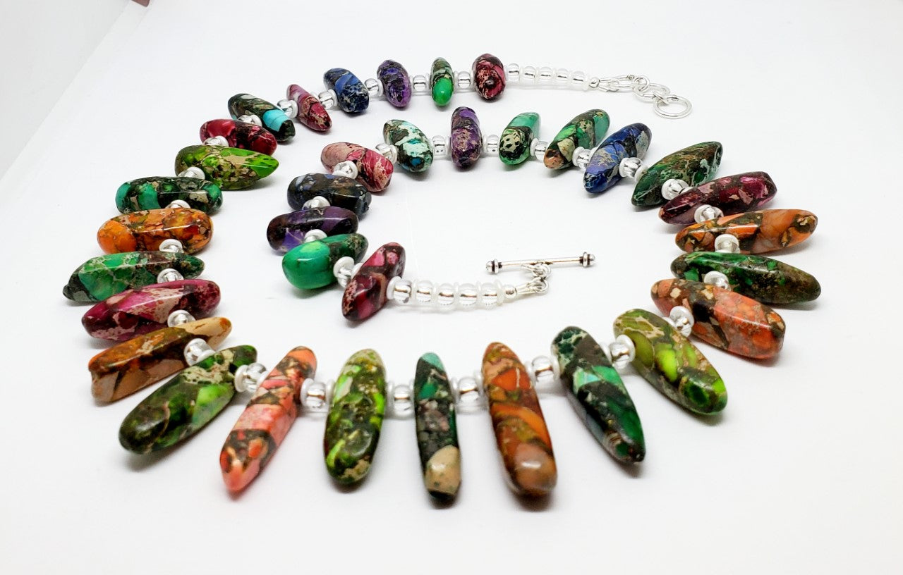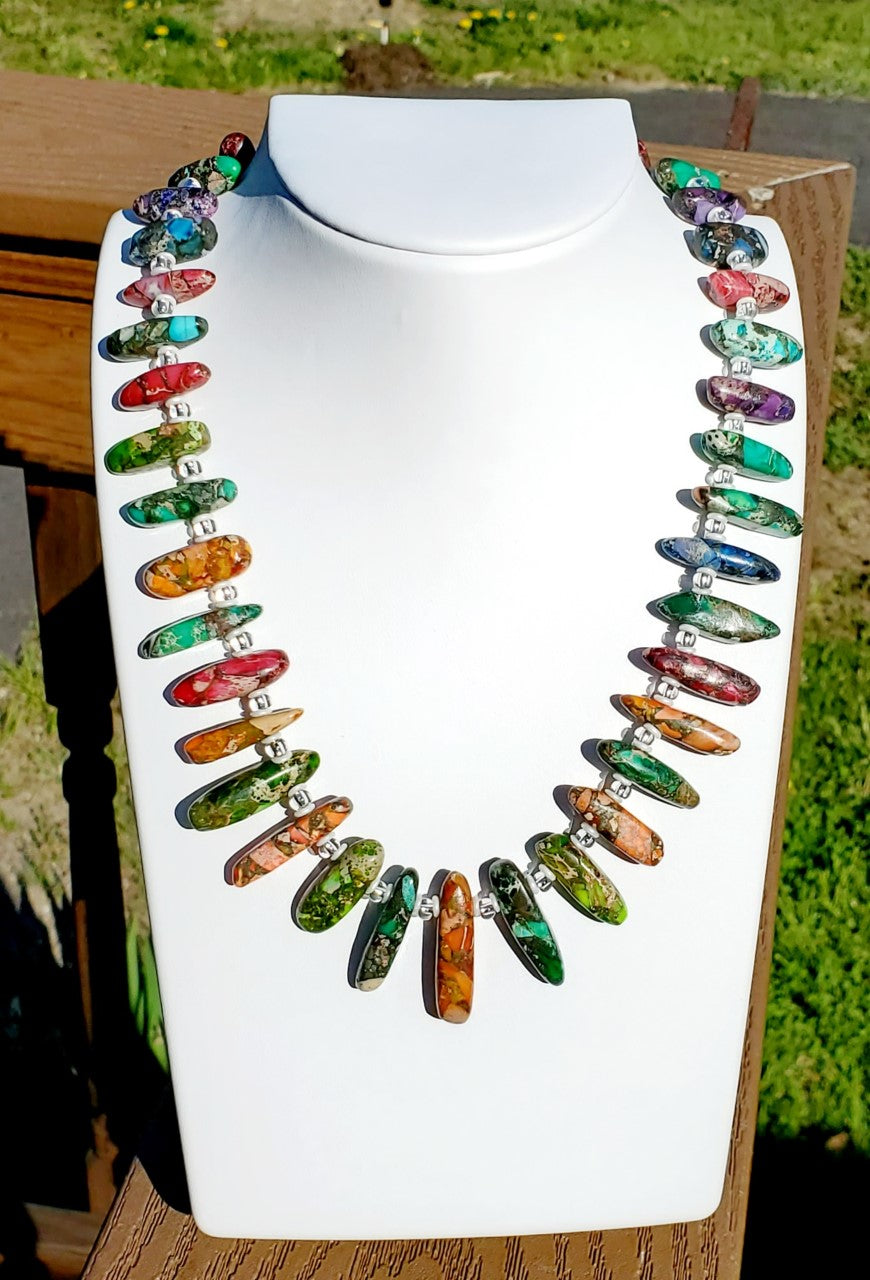 Rainbow Impression Jasper Graduated Stick Necklace with Sterling Silver Clasp
